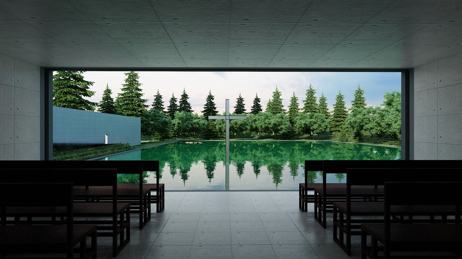 Aunque se la conoce como Iglesia del Agua (diseñada en 1985 y construida en 1988), más que una iglesia es realmente una pequeña capilla que se encuentra en la localidad japonesa de Tomamu, en la parte central de la isla de Hokkaido, al norte del Japón. Pertenece a un complejo hotelero que, como es muy común en Japón, ofrece una serie de espacios diferentes para celebraciones cristianas, sintoístas, budistas o no-religiosas según la preferencia del cliente.