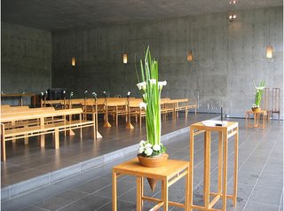 Tadao Ando organiza su proyecto dando la espalda a este complejo hotelero, separandose de él por medio de un muro en forma de L, y estableciendo un recinto espiritual, aislado de lo mundano, dónde todas las perspectivas se fijan en un bosque de hayas por el que discurre un arroyuelo.
