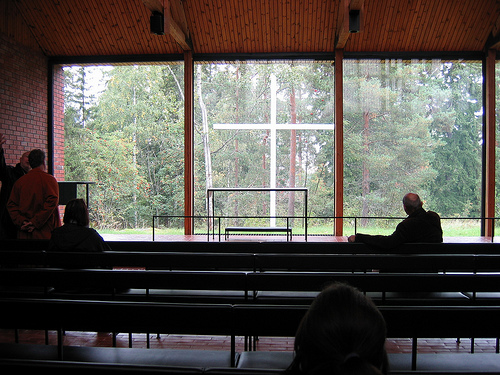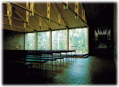 La referencia más cercana a la Iglesia del Agua la encontramos en la capilla de la Universidad Técnica de Otaniemi, en Finlandia, diseñada en 1957 por los arquitectos Kaija y Heikki Siren. En esta capilla podemos ver por primera vez cómo el muro del altar desaparece siendo sustituido por una cristalera que permite la visión de una arboleda y una cruz.