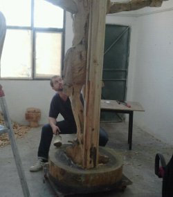 Estoy tallando un Cristo crucificado de tamaño algo mayor del natural, en talla directa, en un tronco de cedro del Líbano, para el seminario Redemptoris Mater de Madrid.[…]