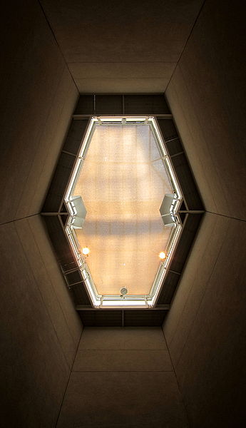 La Capilla Rothko es un edificio de planta octogonal, de ladrillo visto, paredes de estuco y con una claraboya en el techo.