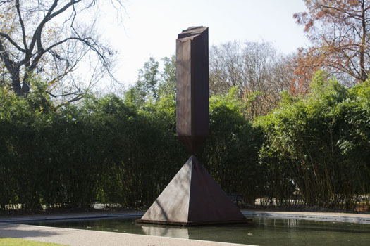 En el exterior de la capilla, colocada en el interior de una lámina de agua, se encuentra una escultura de Barnett Newman titulada El Obelisco Roto. Dicha escultura se trajo en 1969 desde Washington como monumento a la figura de Martin Luther King.