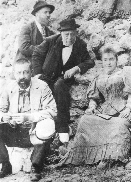 Antoni Gaudí (al fondo) con su padre (centro), su sobrina Rosa y el doctor Santaló en una visita a Montserrat (1904).