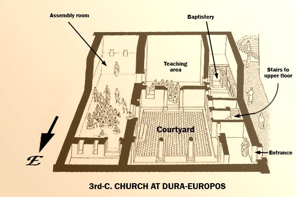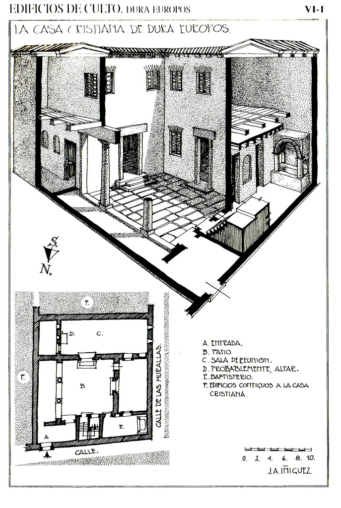 Alrededor de la domus ecclesiae o titulus de Dura Europos se construyó un barrio cristiano, al igual que el barrio judío se organizaba en torno a la sinagoga. La domus ecclesiae de Dura Europos se organizaba en torno a un patio principal y parece ser que constaba de dos alturas, pues en las excavaciones se encontró una escalera.