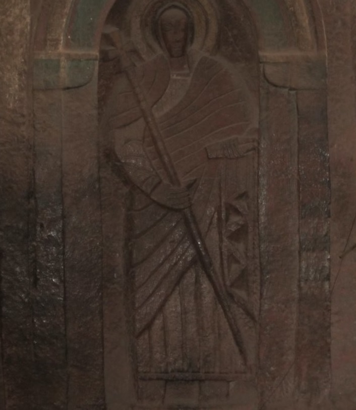 En las fachadas norte, este y sur existen además una serie de nichos que contienen en su interior figuras de santos esculpidas a tamaño superior al real, aproximadamente de unos tres metros. Todos los santos visten con capucha, sostienen un pergamino o libro con la mano izquierda y en la mano derecha portan un bastón en forma de cruz.