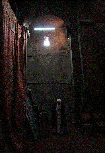 El templo de Bet Meskel contiene un altar de madera de tiempo inmemorial que a su vez comunica con grutas que funcionan como criptas.