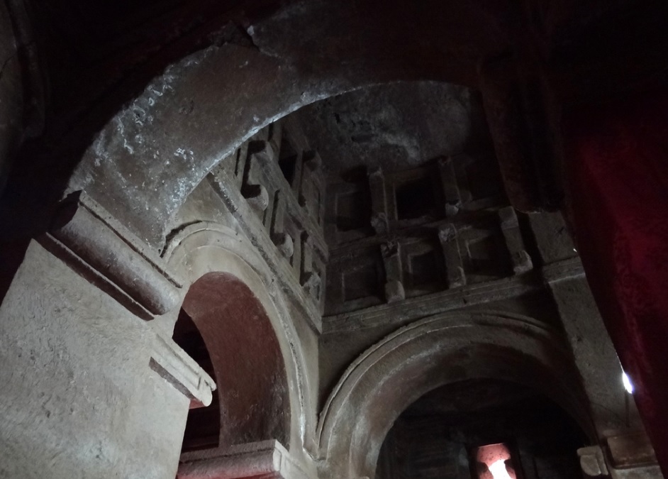 En el nivel intermedio son de arco axumita. Las siete ventanas perforadas en el nivel superior simbolizan los Siete Cielos. Su espacio interior se divide en tres naves por dos hileras de cuatro pilares. La nave principal es abovedada mientras las naves laterales tienen un techo plano.
