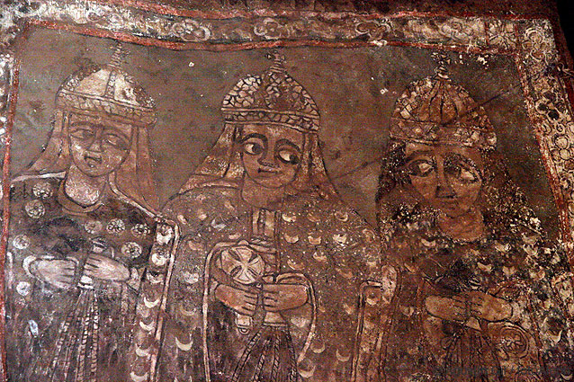 Las celdas están casi desnudas respecto a la decoración a excepción de un hermoso mural en la parte baja del pilar. Este mural representa a seis reyes o santos con elegantes vestimentas que sostienen en sus manos unas elaboradas cruces.