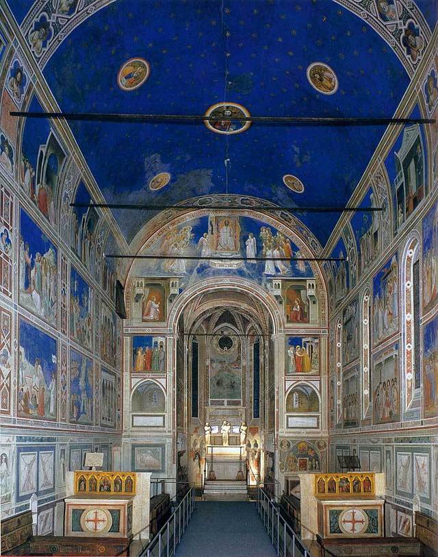 Las innovaciones pictóricas de Giotto desembocaron en la gran revolución artística que supuso el Renacimiento y, no es extraño que se le considere el padre de la pintura moderna. Giotto en el año de 1304 decide trasladarse a la ciudad de Padua. La razón de este viaje se debe al encargo que recibe de la familia Scrovegni de decorar la capilla de los Scrovegni o de la Arena. Como curiosidad mencionar que la capilla fue erigida por Enrico Scrovegni para expiar los pecados cometidos por su padre Rinaldo Scrovegni, famoso por ser uno de los mayores usureros de su tiempo. El propio Enrico es enterrado en 1336 en su capilla justo detrás del altar.