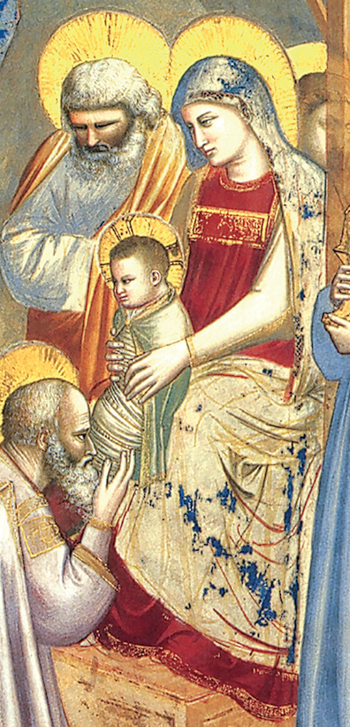 En la pintura La adoración de los Reyes Magos, Giotto retrata la escena relatada en el evangelio de San Mateo (2, 9-11): «Después de esta entrevista con el rey, los Magos se pusieron en camino; y fíjense: la estrella que habían visto en el Oriente iba delante de ellos, hasta que se detuvo sobre el lugar donde estaba el niño.