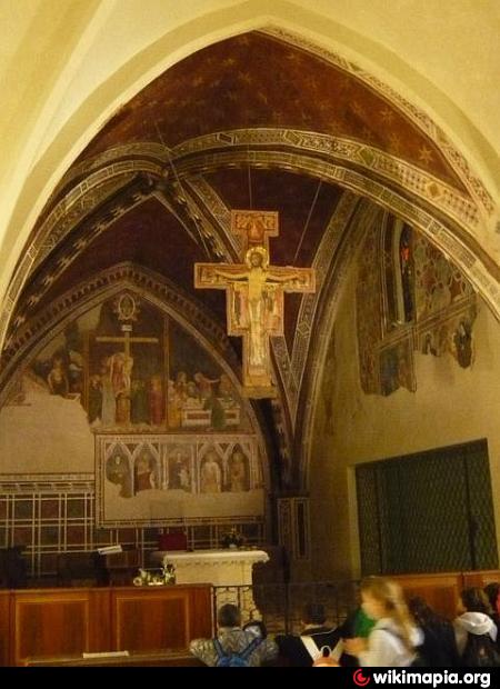 El cristo de San Damián está datado en el siglo XII. Es de estilo románico con influencia del arte oriental-siríaco. Se ha descubierto que durante siglos en la ciudad de Espoleto vivieron monjes siriacos, cuya huella artística influyó sobremanera en el arte italiano de la época medieval. No conocemos al autor del crucifijo de San Damián. En la catedral de Espoleto existe un crucifijo similar y coetáneo al Cristo de San Damián firmado por el artista Alberto Sozio.