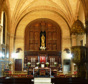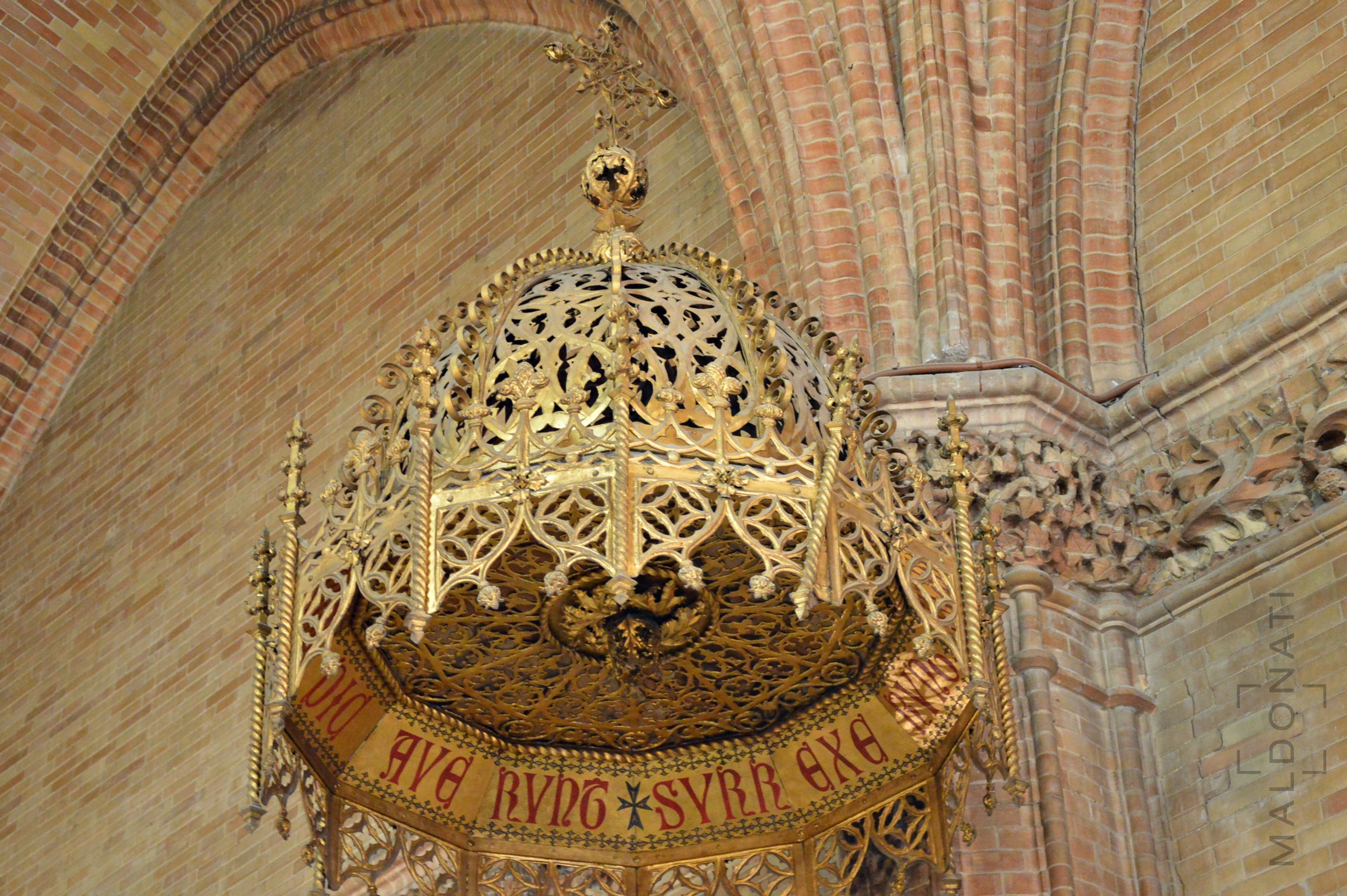 Aníbal González diseña el hermoso púlpito que es una auténtica filigrana de hierro forjado y dorado.