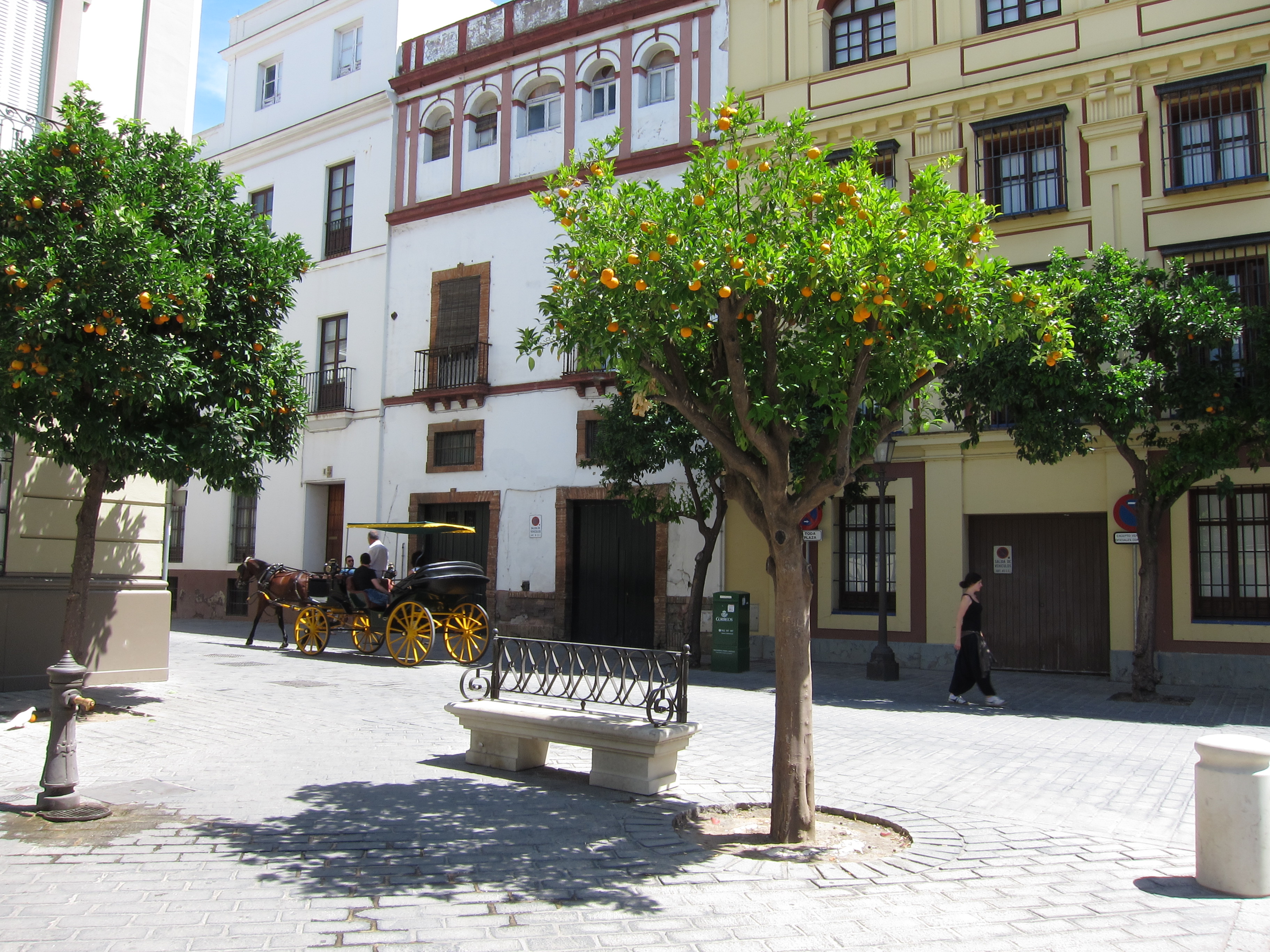 Otro mérito del legado urbanista de Aníbal González es la creación de la calle típica sevillana, con naranjos y jardines similares a los que existían en las mansiones señoriales.