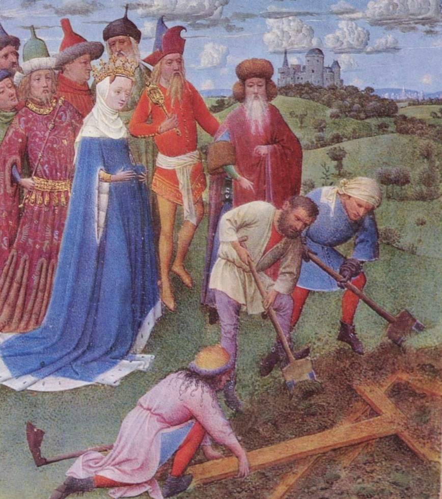 Esta localización es una cisterna muy próxima al Monte Gólgota. Después de las pertinentes excavaciones se localizan no una sola cruz, sino tres: la de Jesús y las de los dos ladrones. La leyenda narra que Santa Elena, para averiguar cuál es la cruz de Nuestro Señor, manda traer a un hombre muerto y acercarle a las cruces. Al tocar la cruz de Jesucristo, la Vera Cruz, aquel hombre resucita.