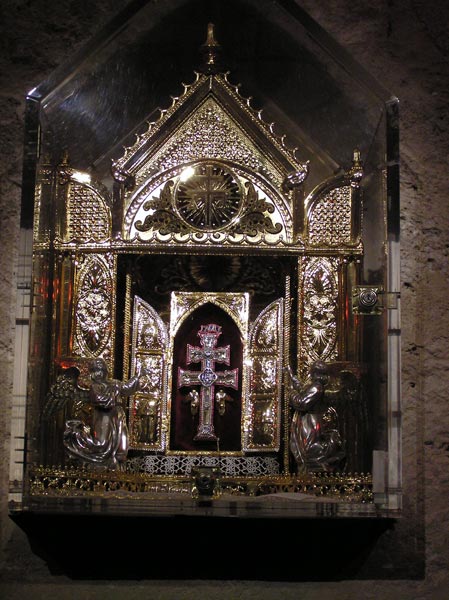 Puede que el lector se haya perdido a estas alturas y piense: Pero ¿qué tiene que ver la Vera Cruz con la Cruz de Caravaca? Ahora se revelará el misterio. Inmediatamente después de la aparición de la Vera Cruz se fueron creando relicarios que portan en su interior pequeños trocitos pertenecientes a ella. En un principio, tal honor recaía únicamente en los Patriarcas de la Iglesia Oriental. Uno de estos relicarios es ¡La Cruz de Caravaca! Según la tradición, pertenecía al patriarca Roberto, primer obispo de Jerusalén tras ser reconquistada a los musulmanes durante la Primera Cruzada en 1099.
